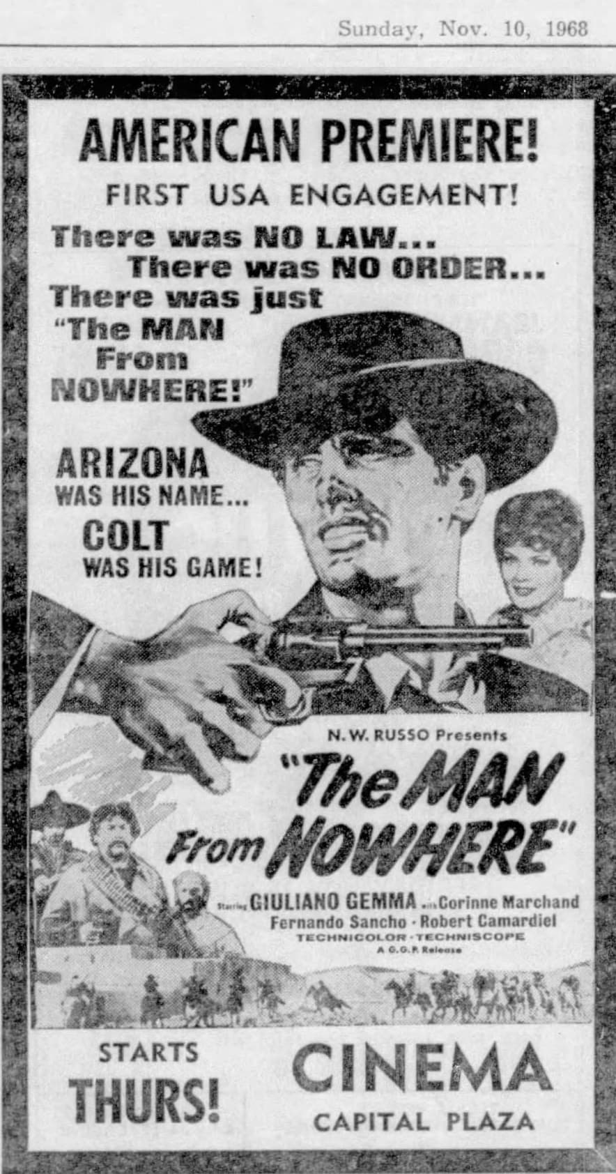 ‘The Man From Nowhere’ opened in the United States in Austin, San Antonio and Houston on November 14 1968.