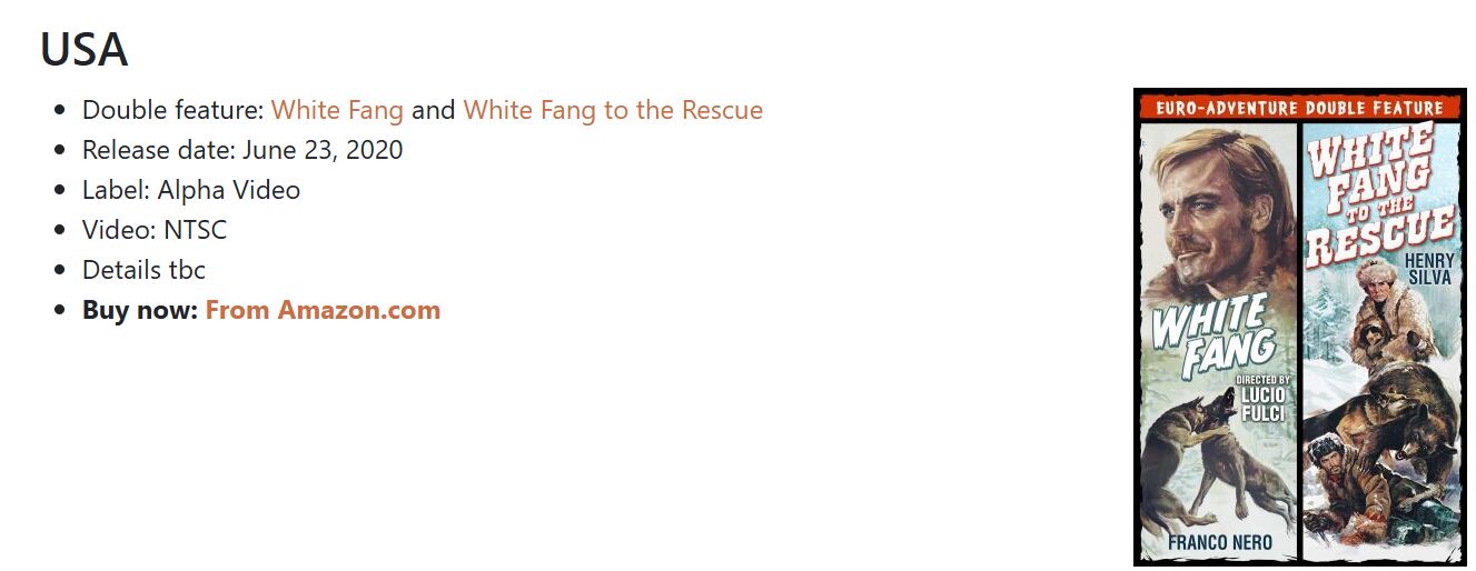 Return of White Fang has been updated to the new layout (3.0). Let us know if you can add anything: pictures, posters, trivia, facts, figures, links, etc…