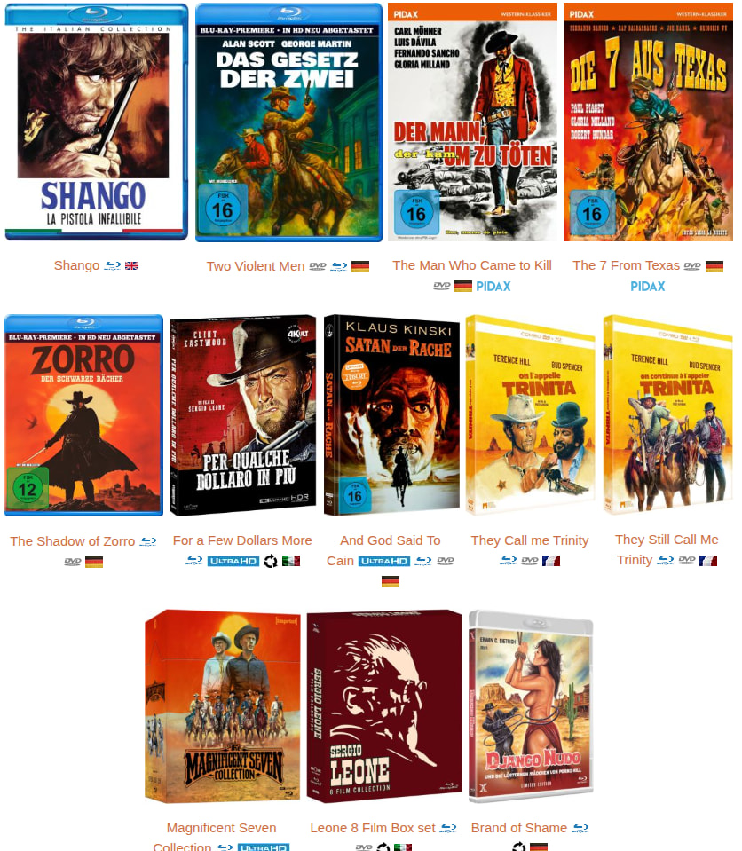 Those of you who feel inclined to donate a dollar or euro or yen or real or whatever, head here. PayPal has improved the donation experience, check it out - and you don’t even need a PayPal account to donate. Also, whenever you shop at Amazon, click on one of the SWDb’s Amazon links first, it doesn’t matter which one and what you buy. We can really use the cash to beef up the server infrastructure, and if we can get enough donations we should finally hire someone to fix some major issues with the underlying tech to make the SWDb better and safer again. Donate - The Spaghetti Western Database