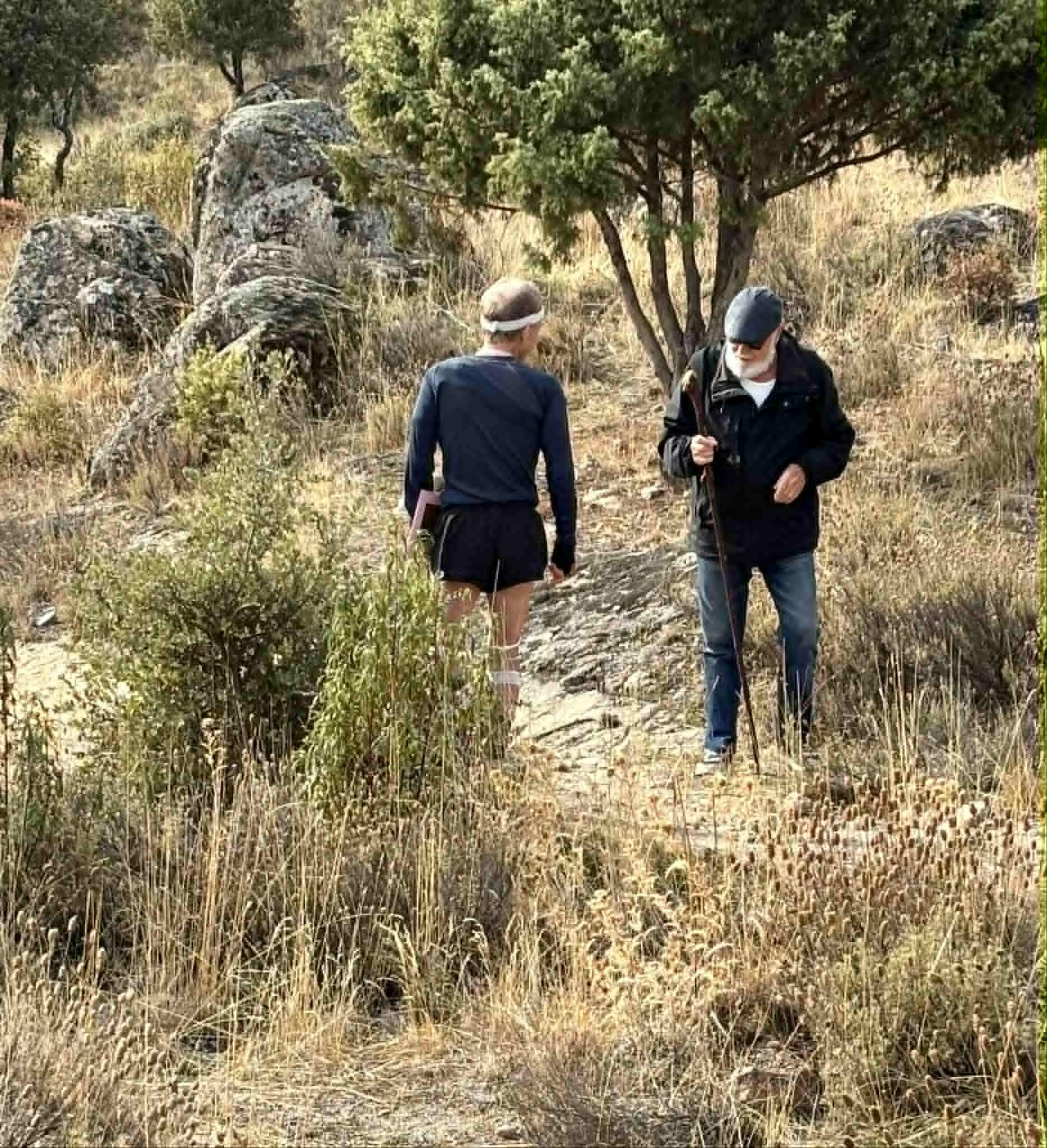 First we met a nice “Gandalf” type wandering the hills with a long walking stick (the image below a screenshot from Youtube). He told me that we should go down again, but that was the lower angle that was not wished…