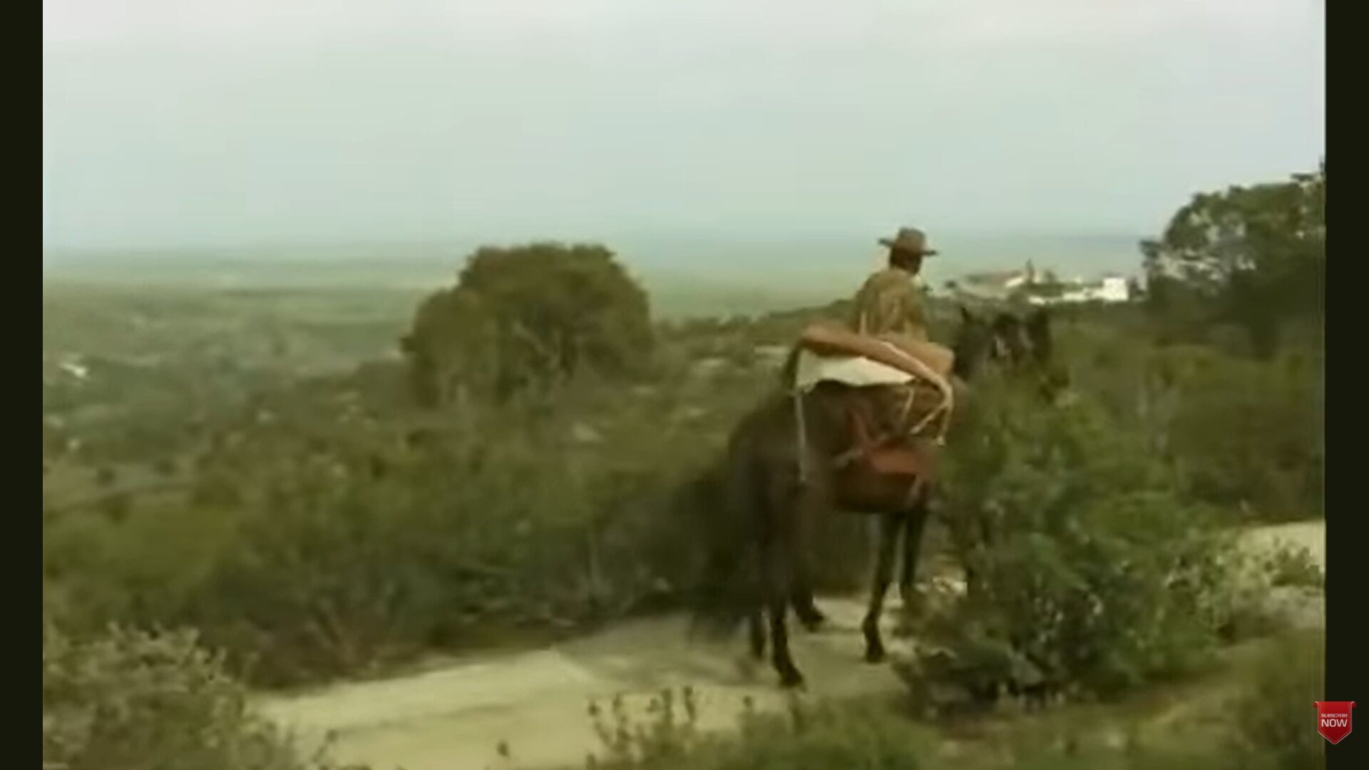 But THIS initial seconds of mule ride and THIS screen-shot shows MORE clues IN ANOTHER DIRECTION with a undulating curve-line of “stones” or ? - maybe marking an estate border or the like. Those strutures and distant mountain should be visible on Google Maps 3D IF it is the correct house Casa de Matalascrajas we have as the number 1 candidate, in spite of that not all features of the house seem to fit…