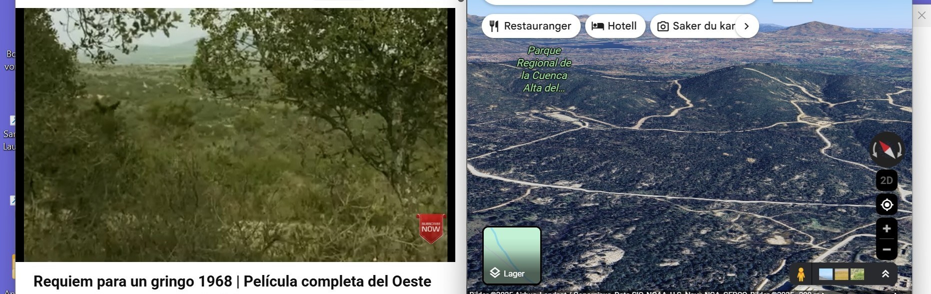 I and my wife are NOW staying in a very practical hotel in Torrelodones around 7 km from the pueblo center of Hoyo de Manzanares and will look for a Requiem For A Gringo-location or two. The one below is shown around 4+ minutes in the SW with zoom as you might remember.