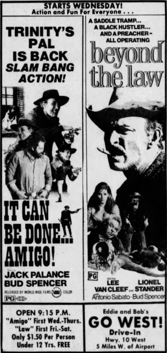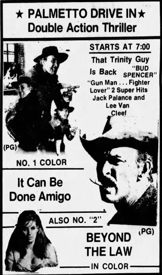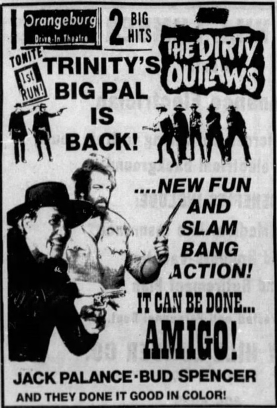 The U.S. kept the original title and ‘It Can Be Done… Amigo’ opened at the Palmetto Drive-In, Florence, South Carolina on October 31 1974.
