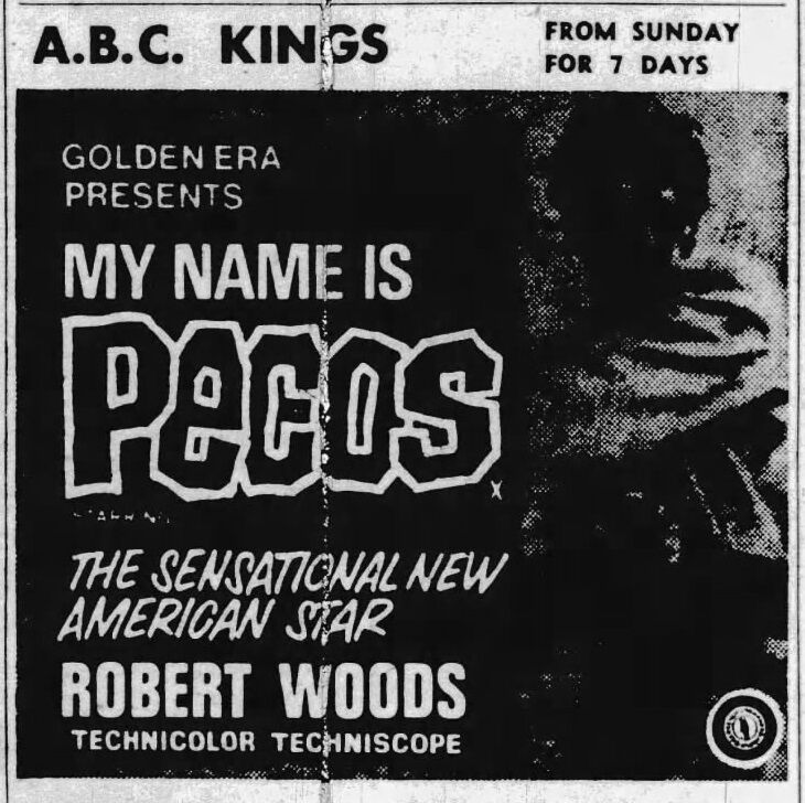 ‘My Name is Pecos’ opened at Kings Cinema, Bristol, 12th May 1968. It played extensively in the UK for the next 18 months. In 1970/71 it was double-billed with ‘For a Dollar in the Teeth’ and ‘A Few Dollars for Django’.