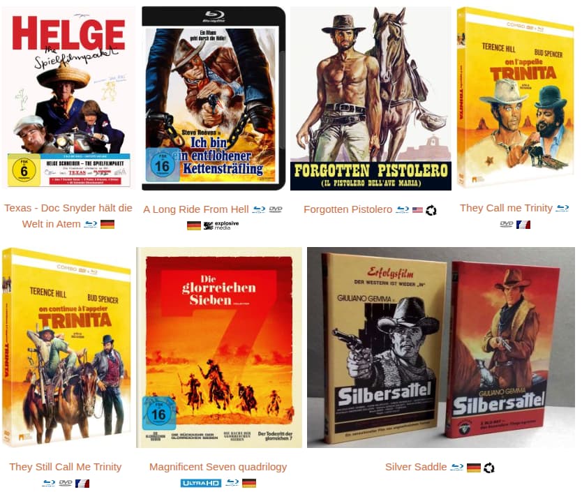 December means Explosive Media is back in the spaghetti western game (finally). So please buy it so they don’t regret it. The Forgotten Pistolero release (USA) gets a wide availability (although it is pricey). There’s a huge Magnificent Seven box in Germany (part one in 4K) and some re-releases. But honestly it’s unclear what the status is with two French trinity discs.