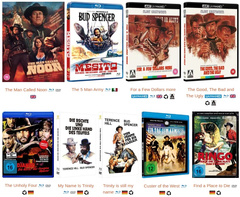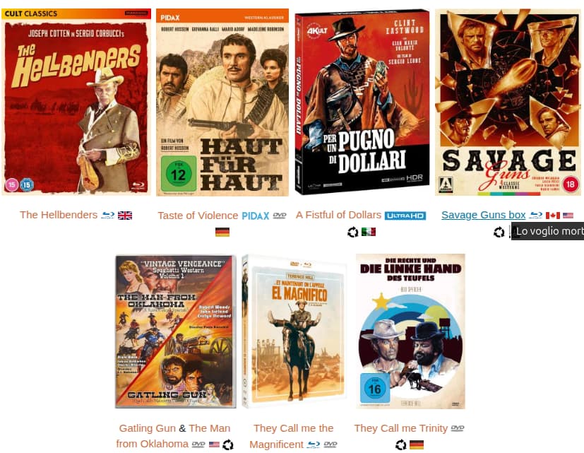Those of you who feel inclined to donate a dollar or euro or yen or real or whatever, head here. PayPal has improved the donation experience, check it out - and you don’t even need a PayPal account to donate. Also, whenever you shop at Amazon, click on one of the SWDb’s Amazon links first, it doesn’t matter which one and what you buy. We can really use the cash to beef up the server infrastructure, and if we can get enough donations we should finally hire someone to fix some major issues with the underlying tech to make the SWDb better and safer again. Donate - The Spaghetti Western Database