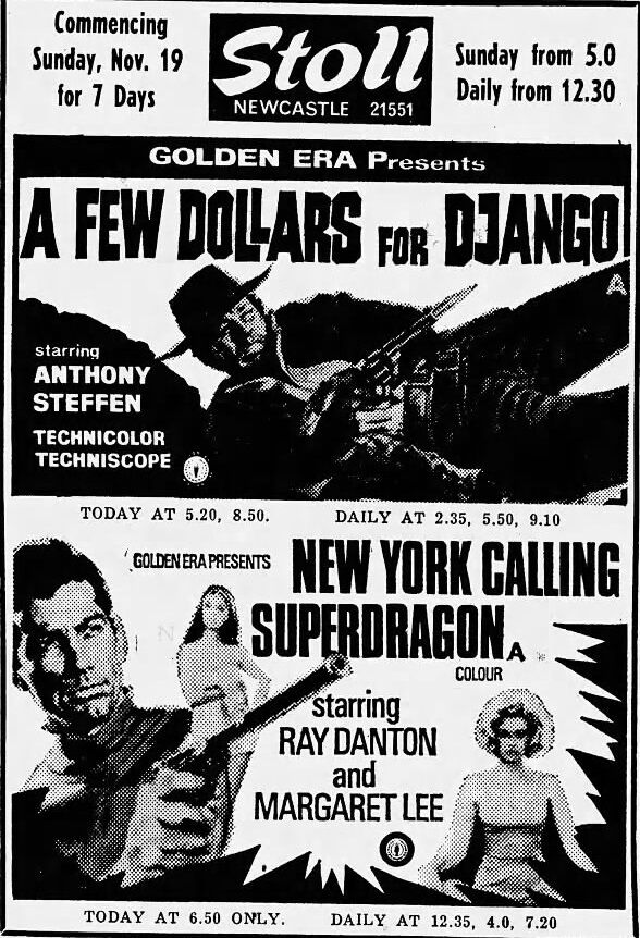 ‘A Few Dollars for Django’ opened 2nd July 1967. This modest spaghetti western was rarely off the UK cinema screens for the next two years.