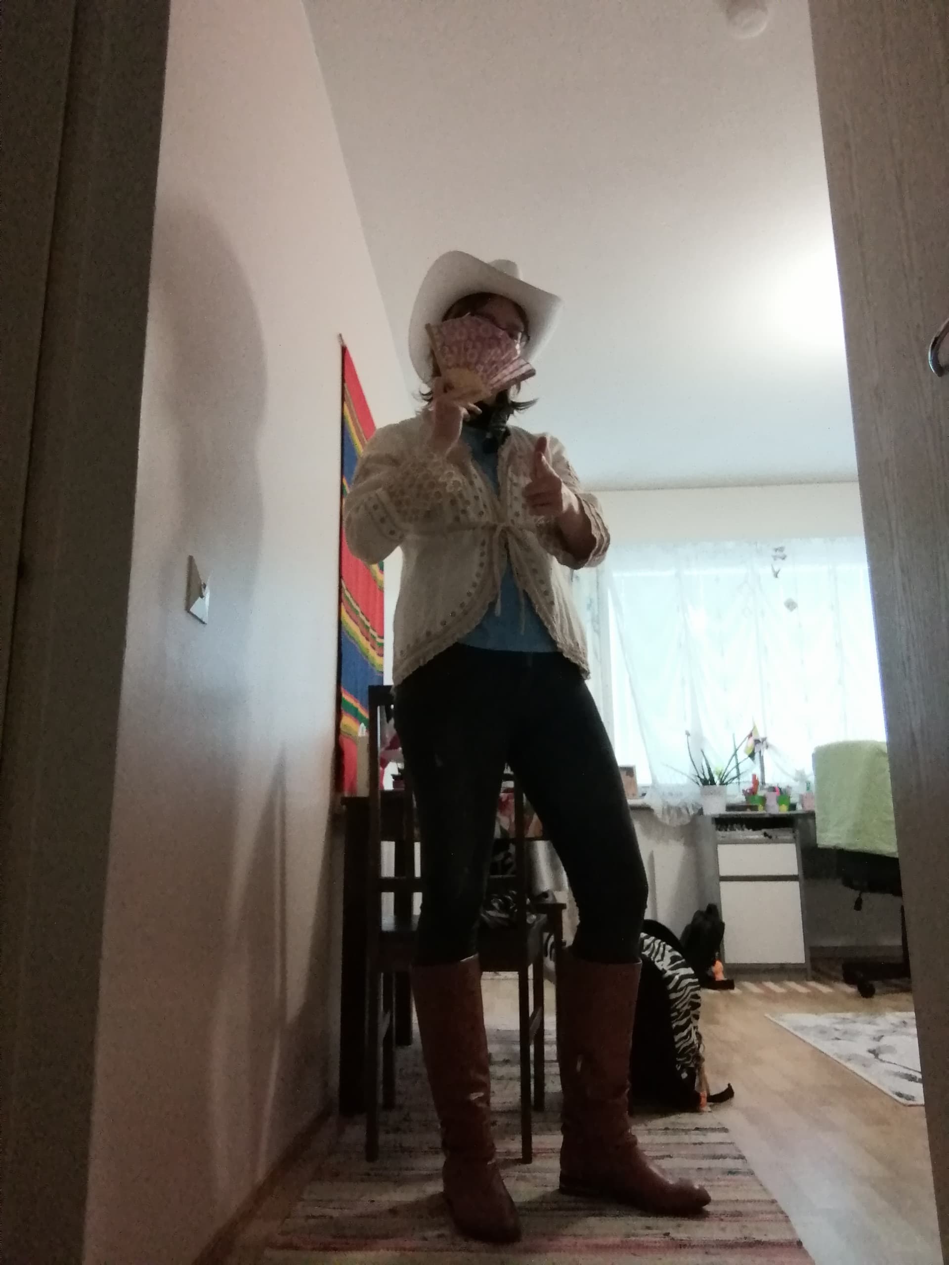 My last western dress-up dates back to february this year, when my girl celebrated her bithday with a western saloon party. Fortunately it was carneval-season and I bought a hat, a gun and belt in a toy store. With a kind of scarf-poncho I also looked a bit like Brett Halsey from Today It’s Me, Tomorrow You.