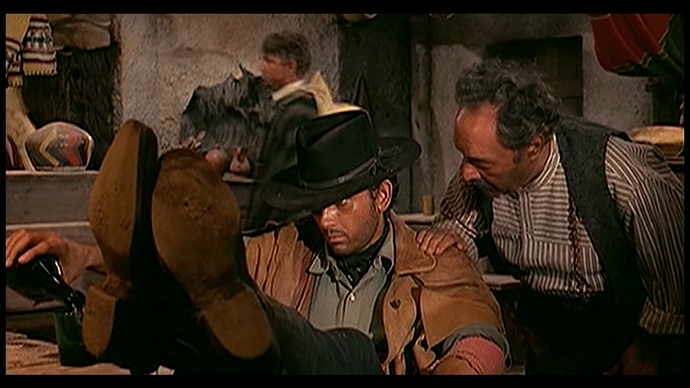 Leonard Mann is wearing that damned unattractive leather cape coat (the 3rd time I’ve seen it in a week) … and later he has Alberto del Acqua’s coat from ‘Texas Adios’ … one of the Mexican baddies is wearing ‘El Indio’s’ brown shirt with red diamond shapes on the collar … well I had to try and make it interesting for myself!