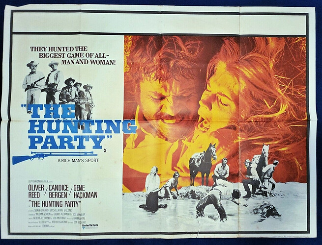 This one is full of horrid characters, especially ‘Brandt Ruger’, played by Gene Hackman - a wealthy sadistic rancher, who goes on a hunting expedition with his other wealthy playmates … when Ruger’s wife, played by Candice Bergen, is abducted by ‘Frank Calder’ (Oliver Reed) mistaking her for a school teacher who will help him learn to read - Ruger’s hunt then turns into a different type of party … not so much a rescue mission, but an excuse to pick off ‘Calder’s’ gang one by one.