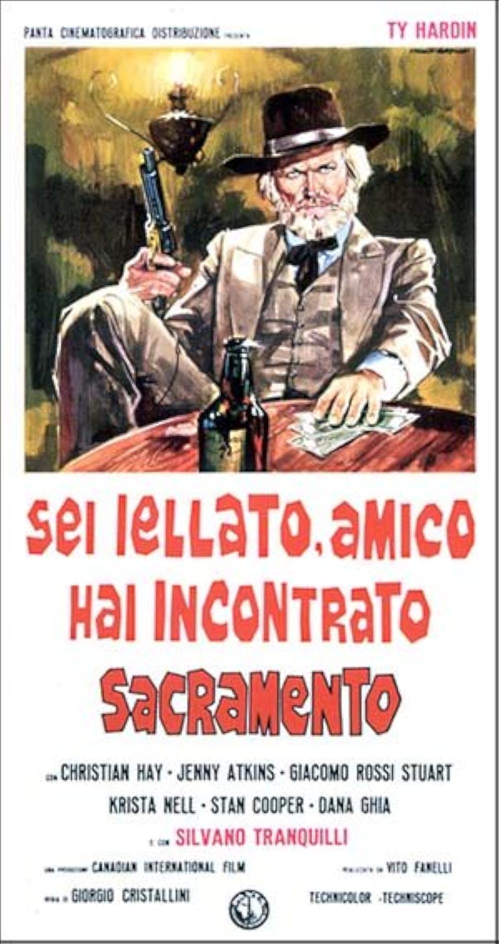 Day 14: You’re Jinxed, Friend…You’ve Met Sacramento (1972) Directed by Giorgio Cristallini. Starring Ty Hardin, Christian Hay, Giacomo Rossi, Stuart, and Jenny Atkins. Retired boxer Jack “Sacramento” Thompson (Hardin) tries to be a good father to his two adult children: Jim (Hay) and Maggie (Atkins) while continuing to fight with his old enemy, Tom Murdock (Stuart), a criminal from his past who accuses Sacramento of past wrongs. His kind want him to settle down and his saloon-owning girlfriend Rosy seems to want a more serious commitment. When Murdock kidnaps Sacramento’s daughter Maggie for $20 thousand ransom, he must finally make the fight of his life to save her. Sacramento was an acquired taste for me. Random scenes like the Christian spiritual revival procession and sing-along among Mexican peons and the scene with Sacramento peeping on his son Jack while he’s making out with his new beau, Evelyn, were awkward and off-putting. However, the movie grew on my as I continued watching it. Rating: 2.5/5.