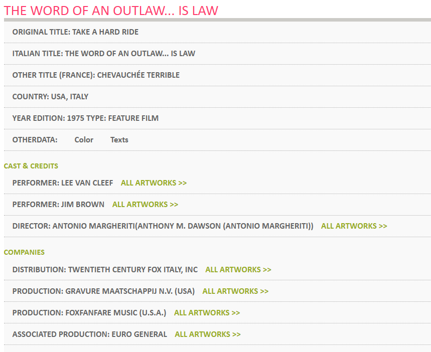 Yes, baffling. But the fact that only four Italians (and no Italian actors at all) were involved in the making of Take a Hard Ride – Margheriti, his cinematographer Riccardo Pallottini and, judging by the names, camera operator Carlo Tafani and special effects supervisor Luciano D’Achille – makes the participation of an Italian production company unlikely, I think.