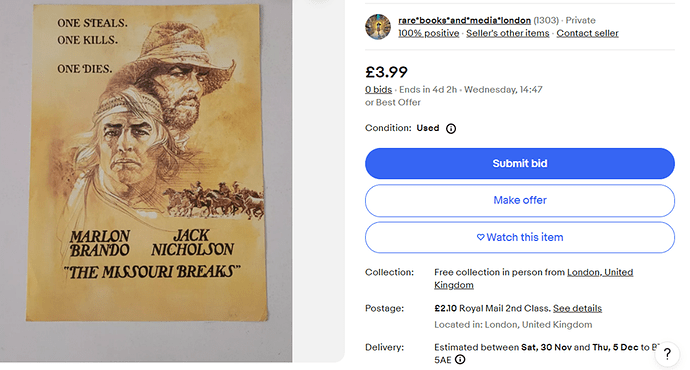 My complaint wasn’t the artwork for sale, that’s the original poster artwork on the cover of the exhibitor’s campaign book, which contain plot synopsis, cast list and advertising materials for local press.