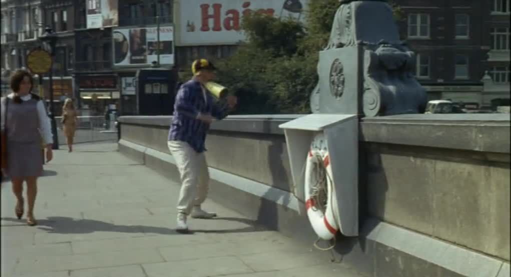 I was thinking it might be Michael Winner’s comedy heist film, ‘The Jokers’ (1967) … but it is clearly ‘The Sandwich Man’ (1966)