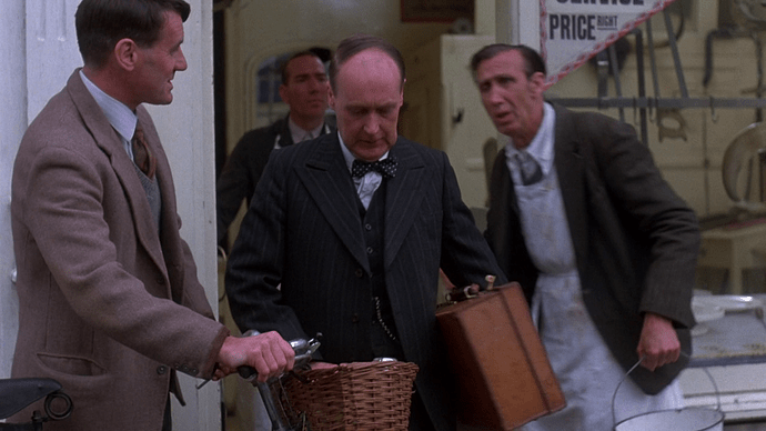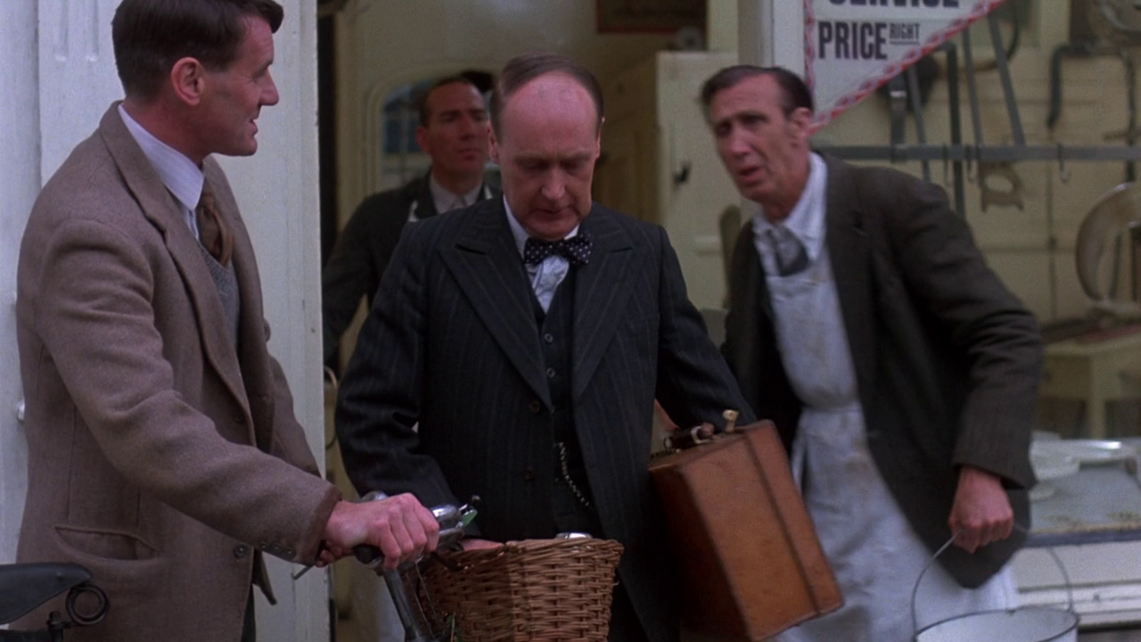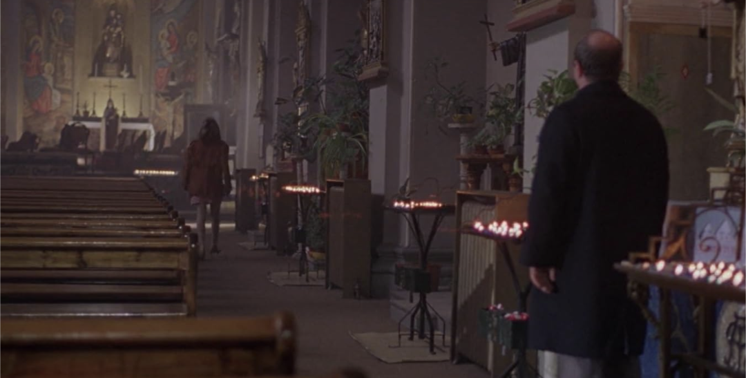 The bald head looks like the one of Bob Hoskins. There is a church in the picture and there is also Liam Neeson in the movie. ![]()