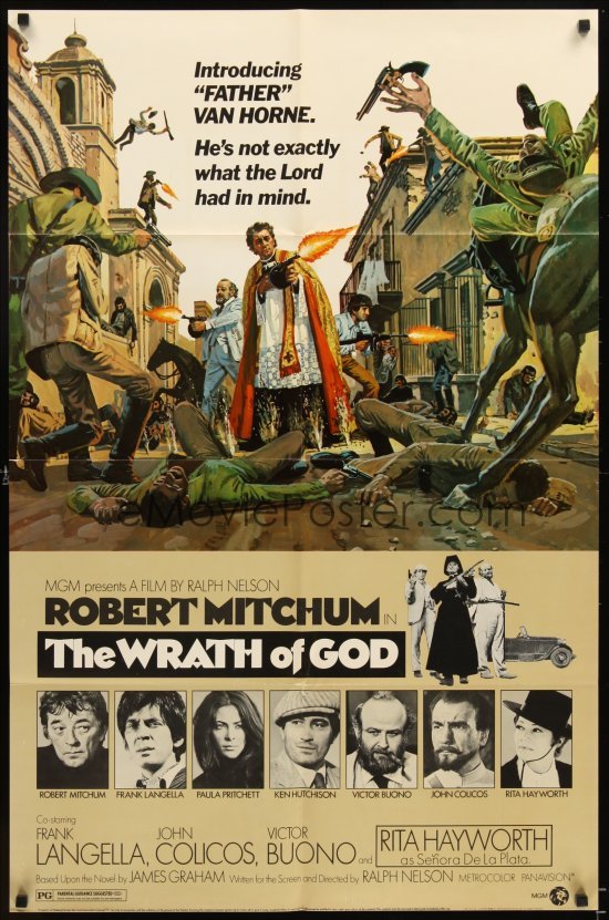 The Wrath Of God - really enjoyed this early 70’s action flick. Robert Mitchum, Victor Buono and Ken Hutchison are on a mission to kill an evil Mexican warlord played by Frank Langella. This is one of them films that somehow managed to get a PG in America (It was an X here) back then, it’s pretty violent with quite a few blood squibs, even a kid about seven or so gets shot in the back and you see the blood expolode out of his chest!