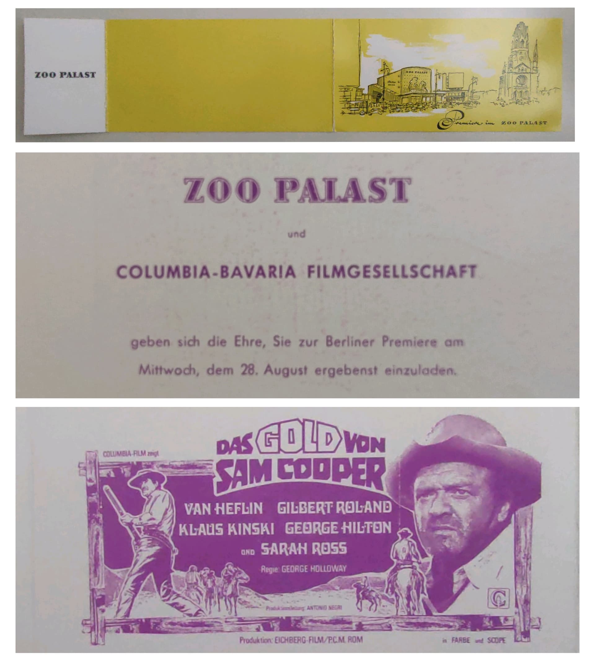 The Berlin premiere for “The Ruthless Four” took place on August 28, 1968. Here are some photos of an invitation card to the film premiere at the Zoo Palast Berlin.