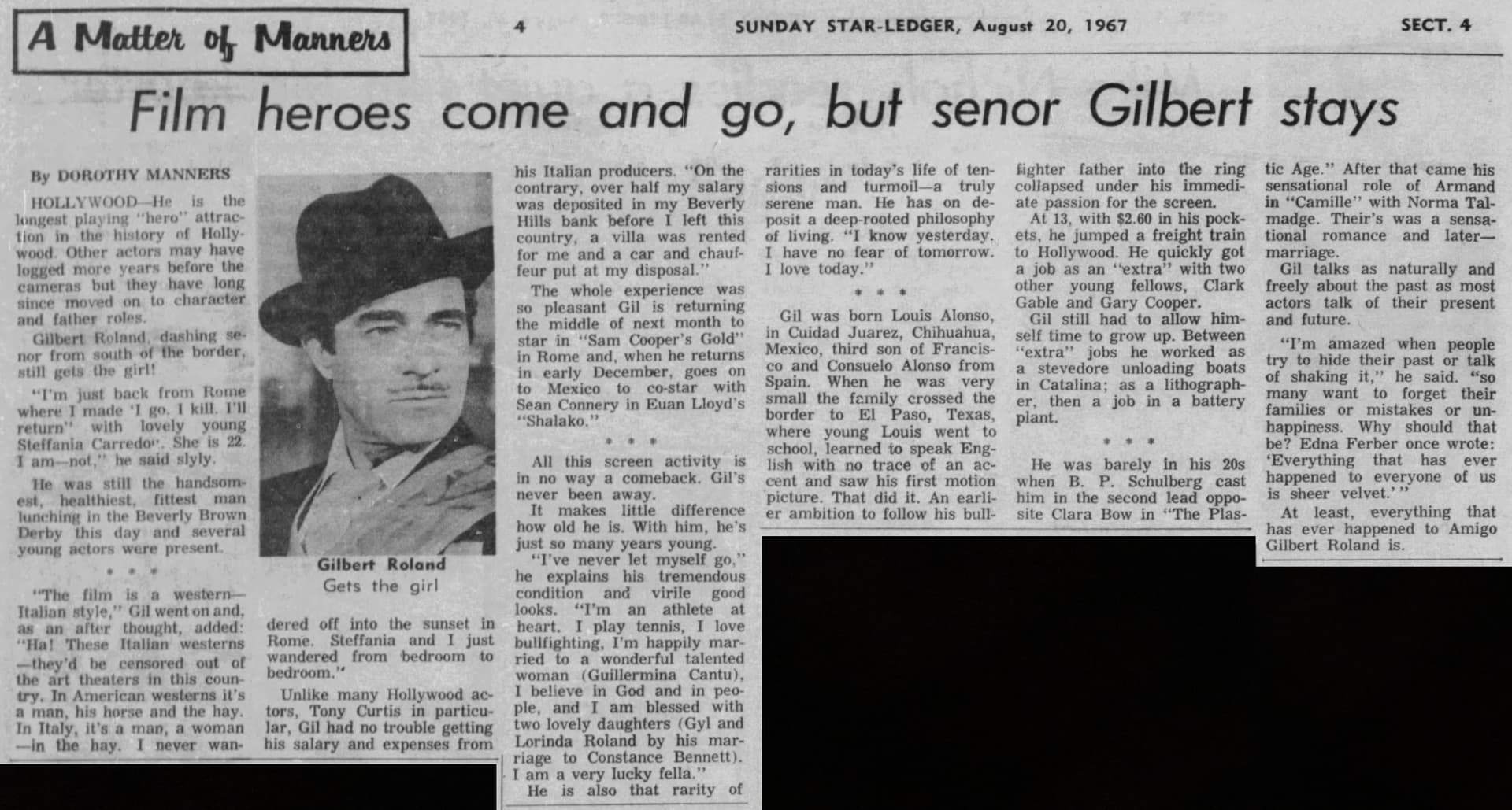 An interview (below) with Gilbert Roland a few weeks before returning to Rome to star in ‘Sam Cooper’s Gold’.