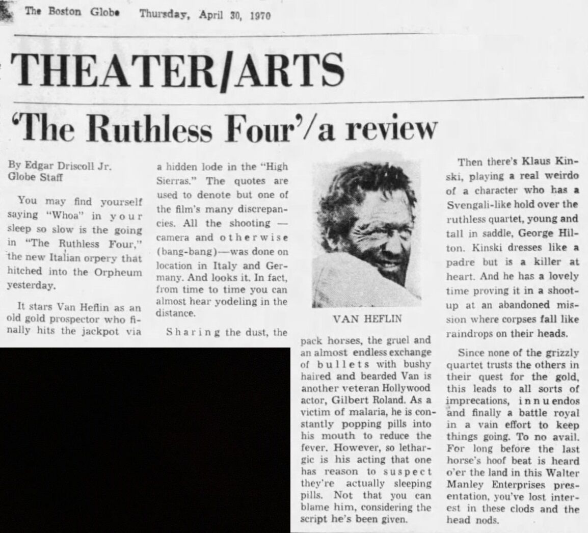 As for ‘Ruthless Four’…?  Well, you can’t go wrong with the casting (Gilbert Roland, Van Heflin, Klaus Kinski, George Hilton).