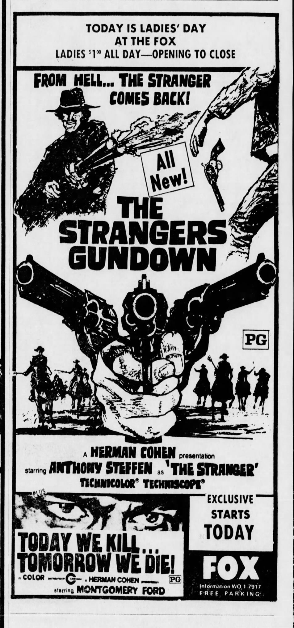 A great double feature with ‘Today We Kill… Tomorrow We Die!’ (Detroit Free Press, April 10, 1974) and 18 months later screened with the ‘Thrilla in Manila’ (Ali-Frazier III), (Plain Dealer, Cleveland, Ohio, October 8, 1975).