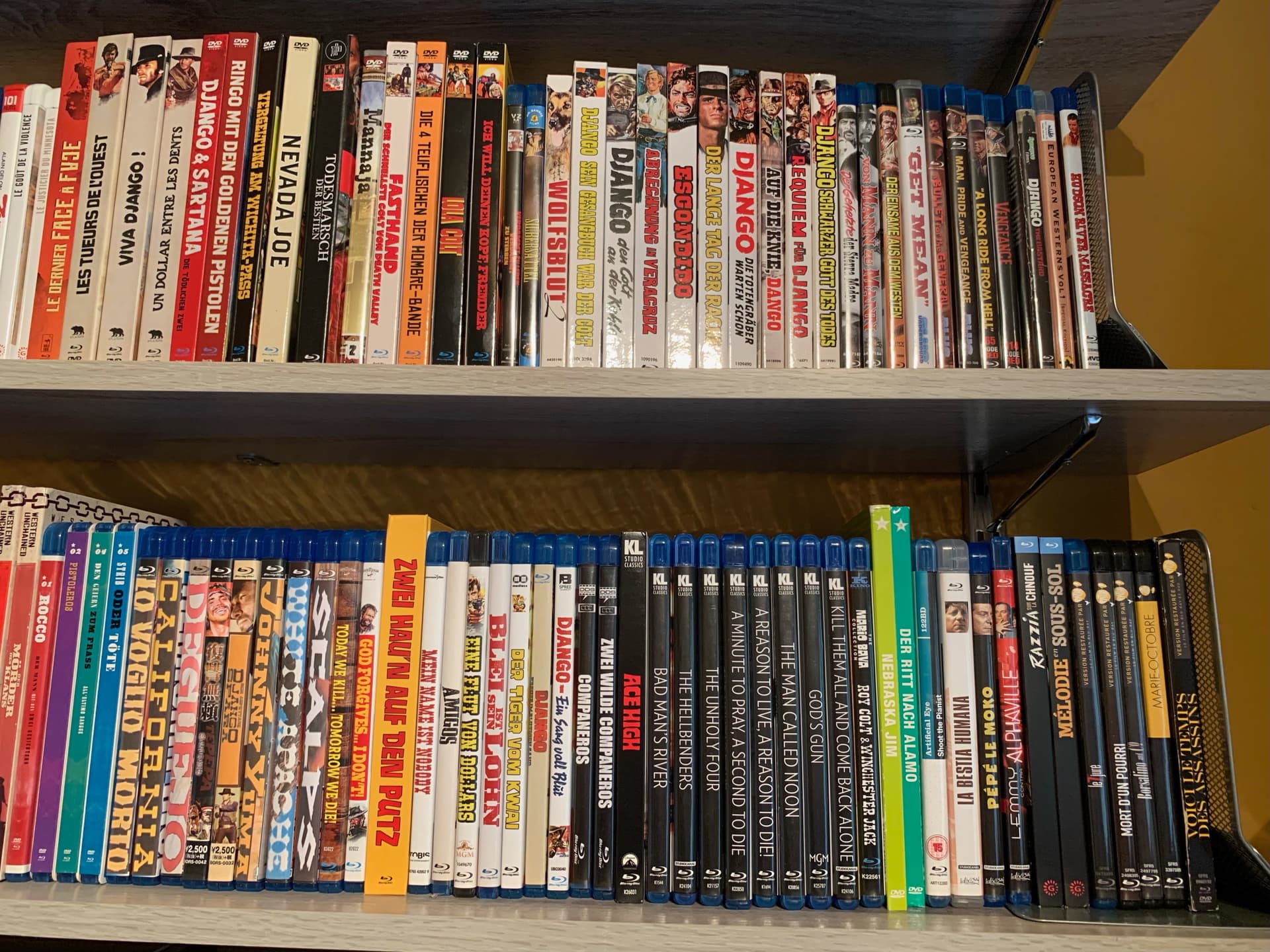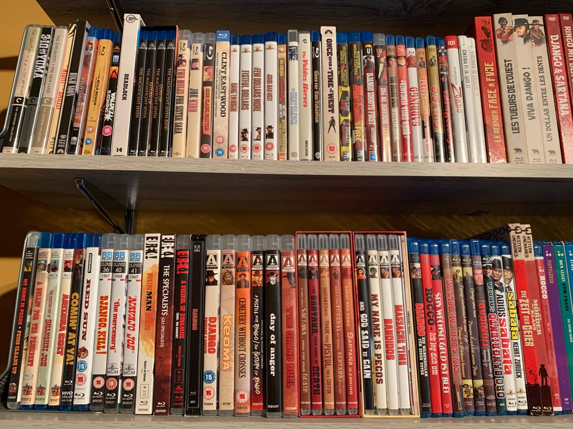 Thanks fo the welcome! Here they are. Youāll have to ignore some of the regular westerns and a bit of french noir on my shelves at either end!!